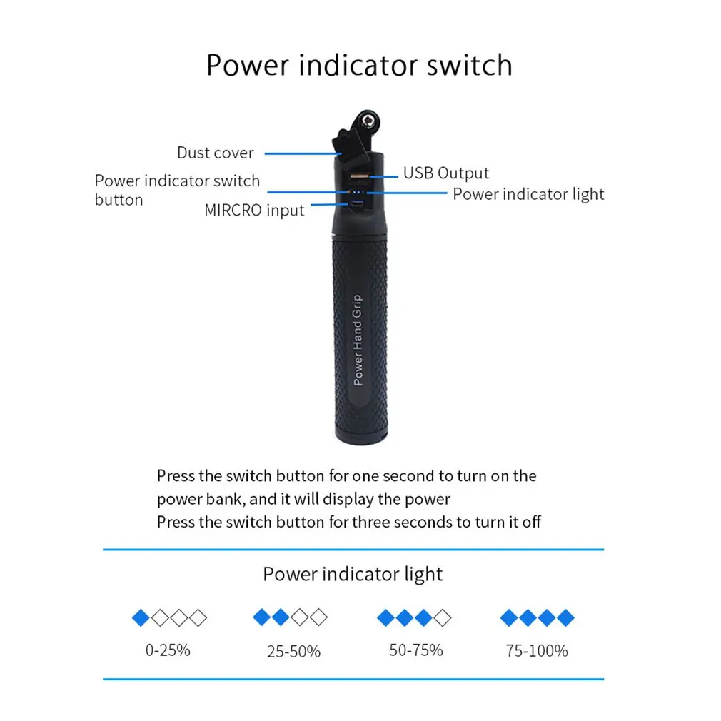 - Product name : Selfie Stick USB Output Portable Power 5200mAh Hand Gaip Charger Handheld Self-timer Pole For START